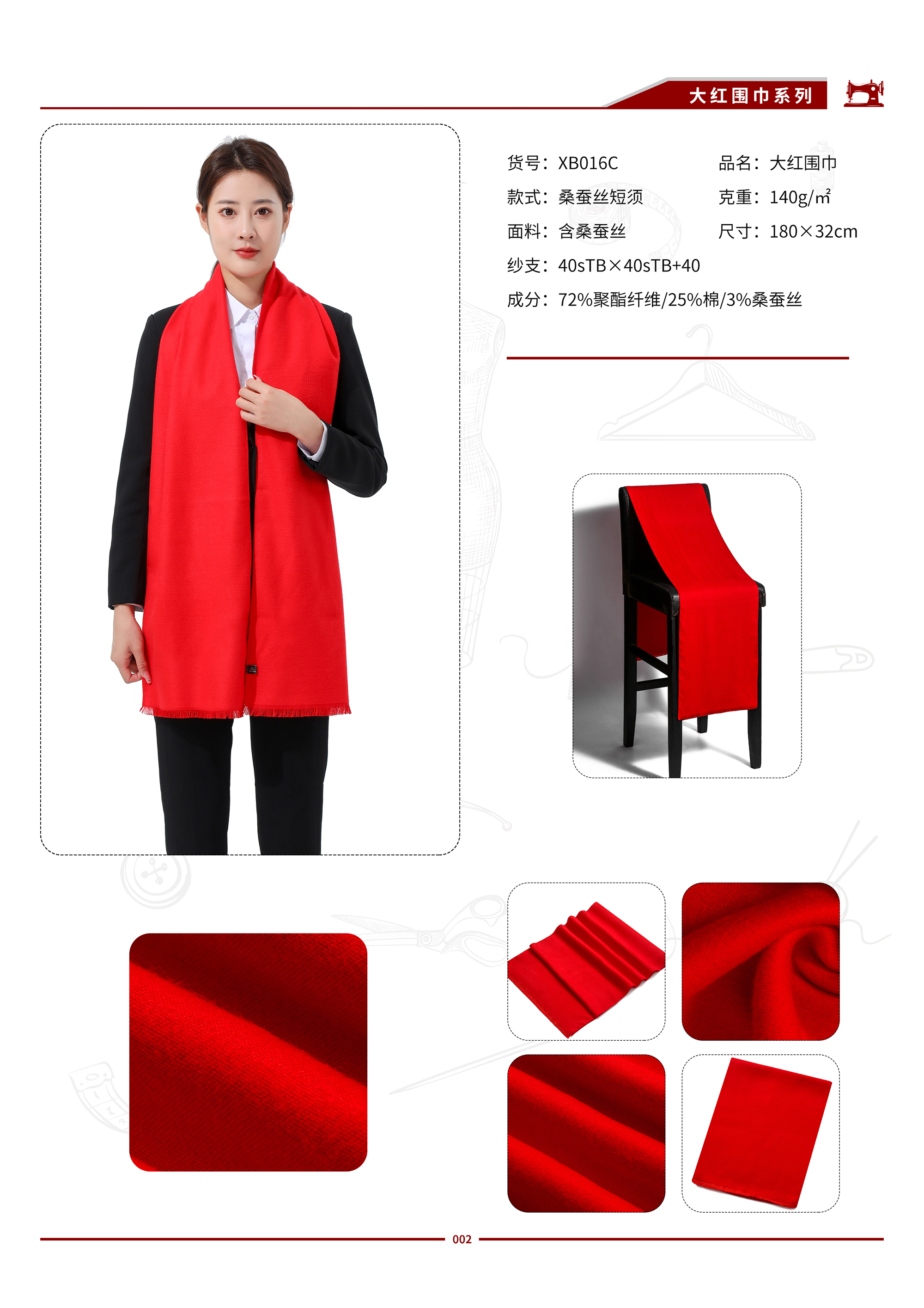 XB016C 大红围巾(含桑蚕丝)
