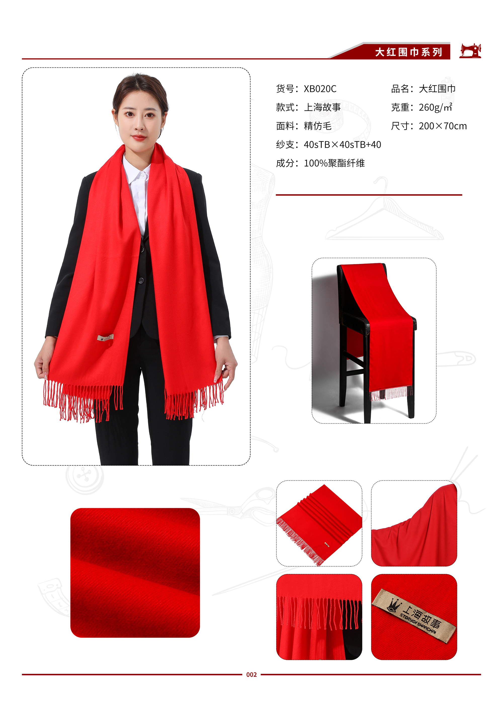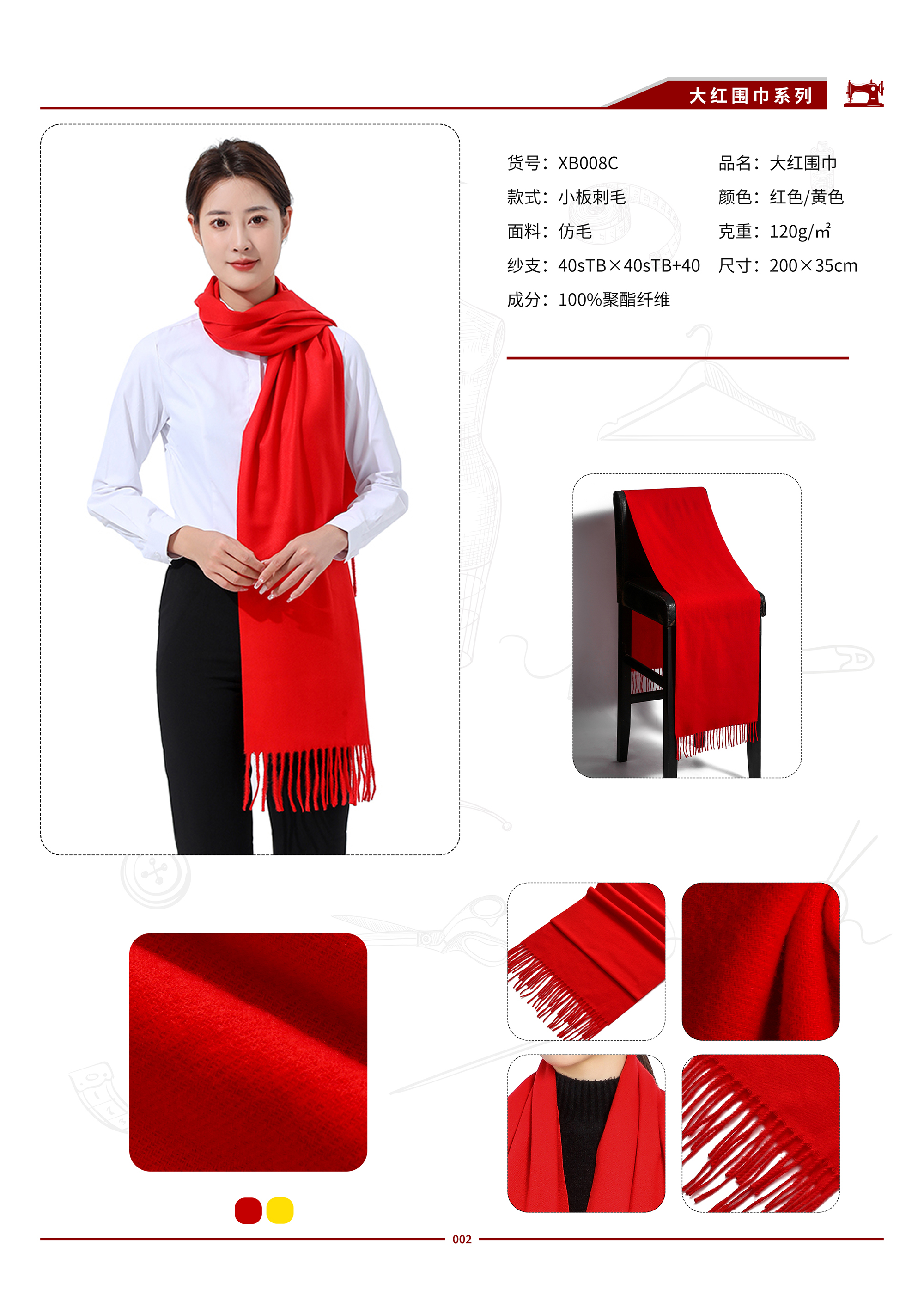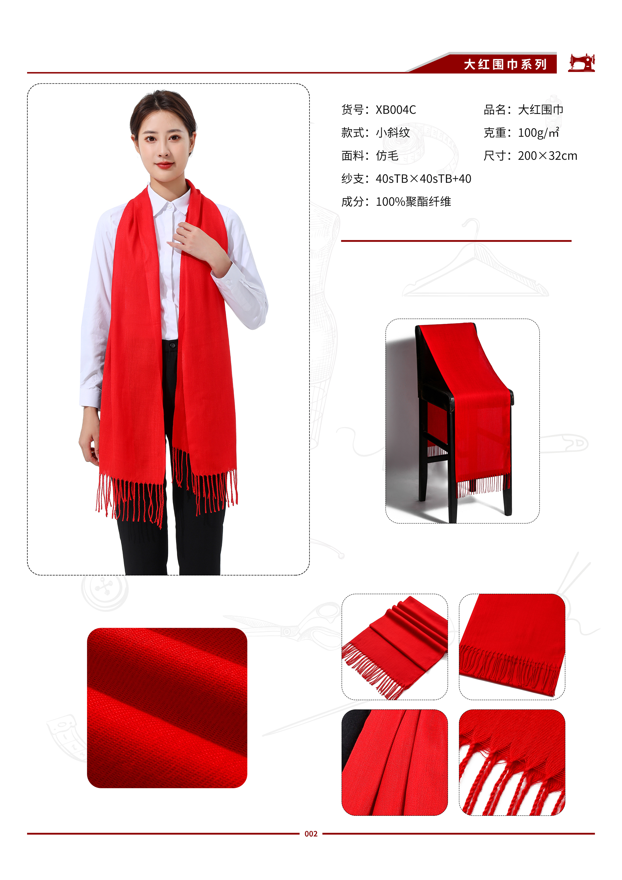 XB004C 小斜纹仿毛大红围巾