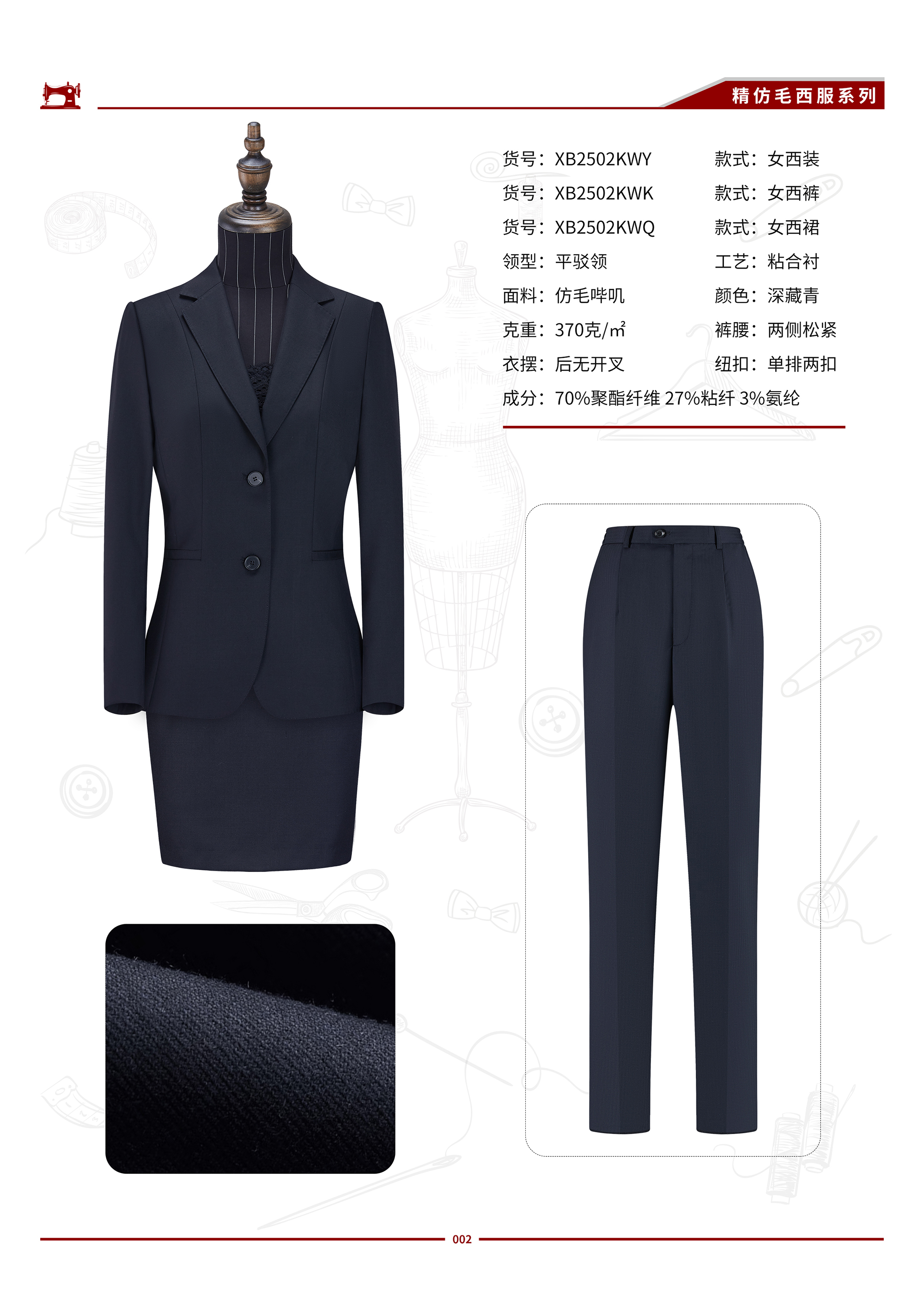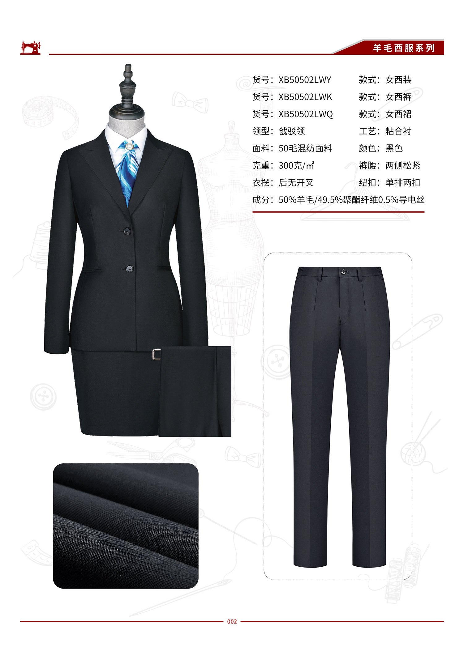 XB259901LW 女士100%羊毛半麻衬可机洗西服