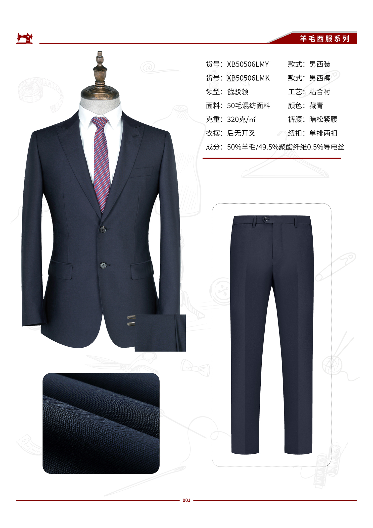 XB259901LM 男士100%羊毛半麻衬可机洗西服