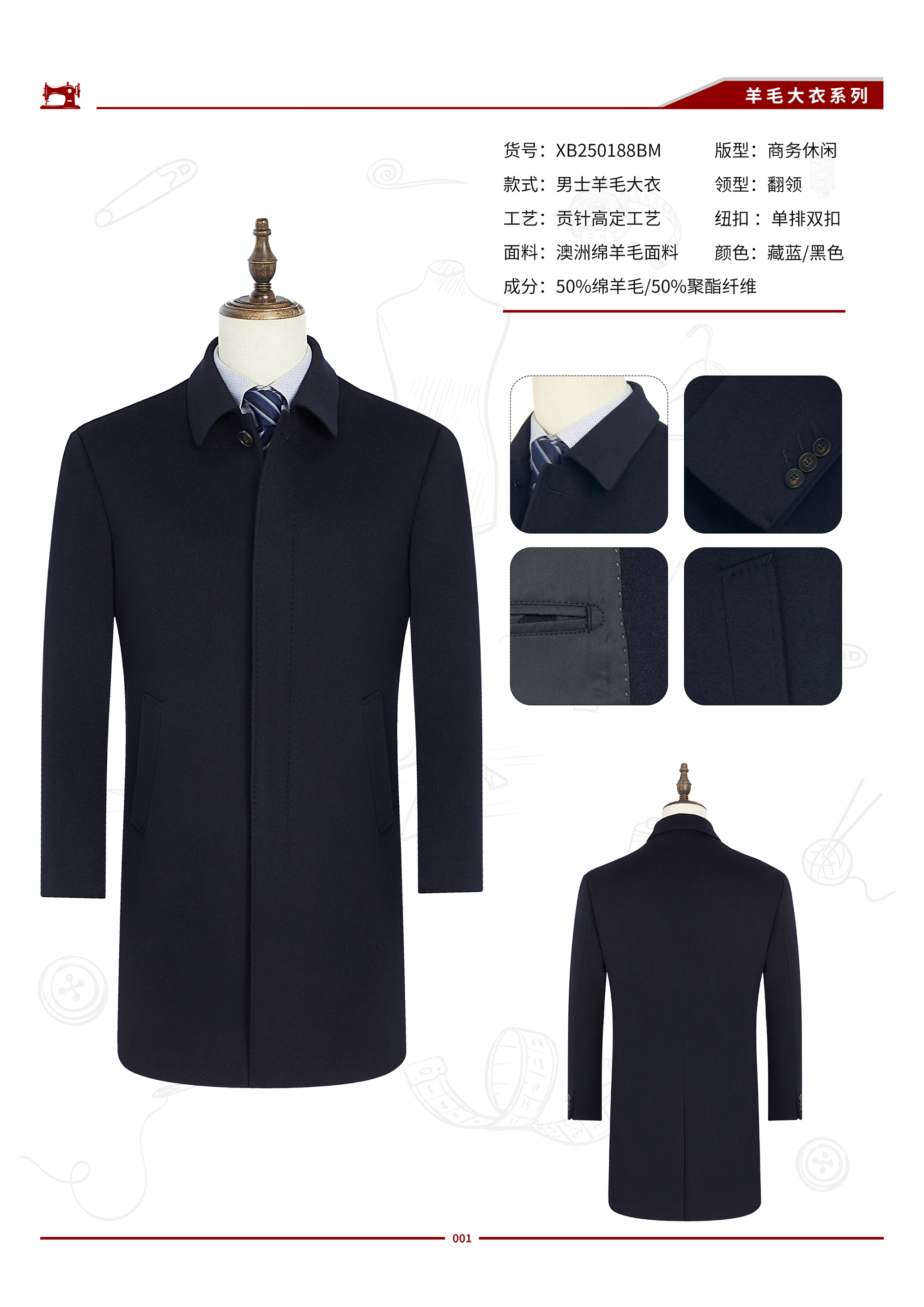 XB25Y0188BM 男士50%羊毛暗扣大衣