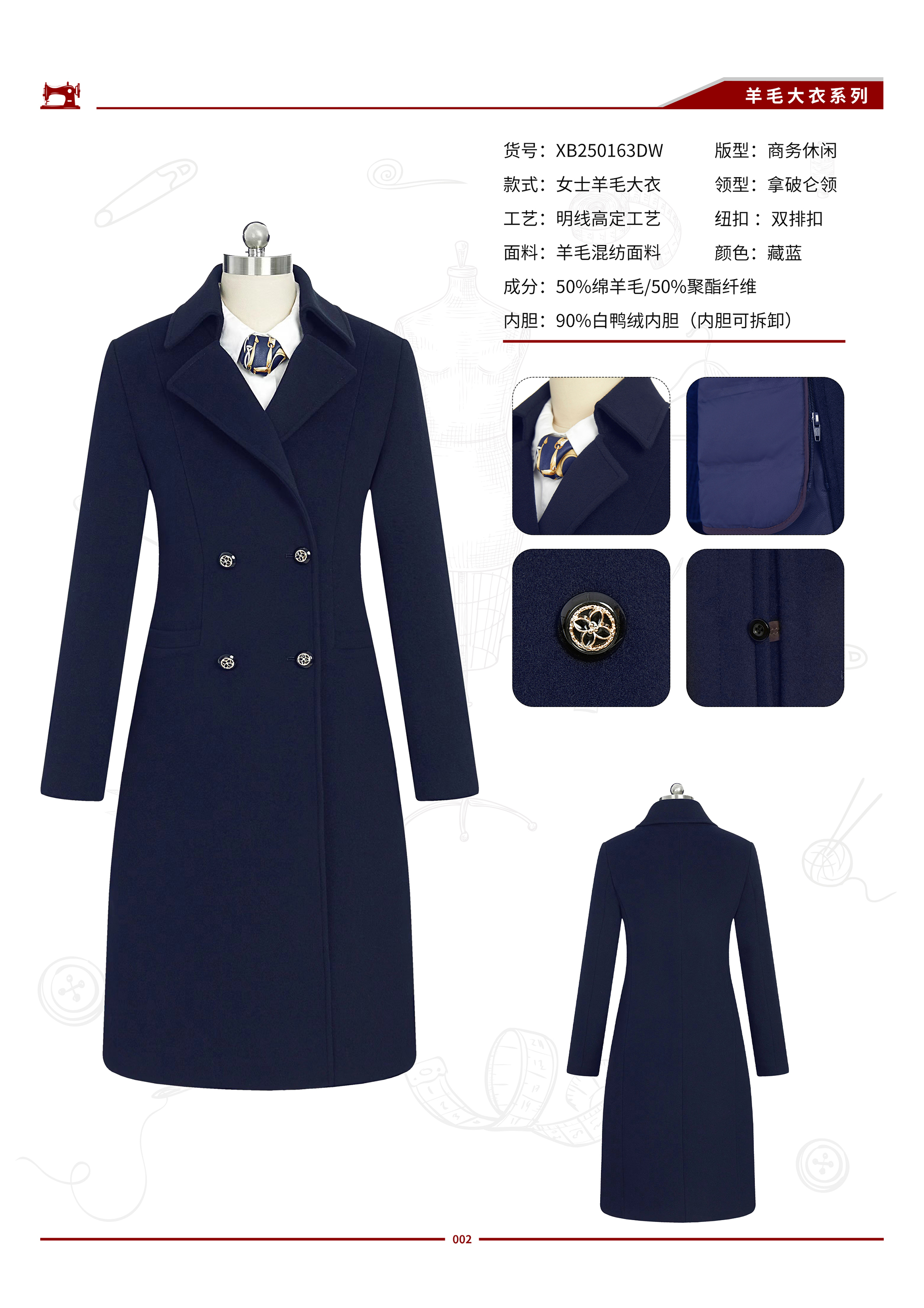 XB250163DW 女士50羊毛90白鸭绒大衣
