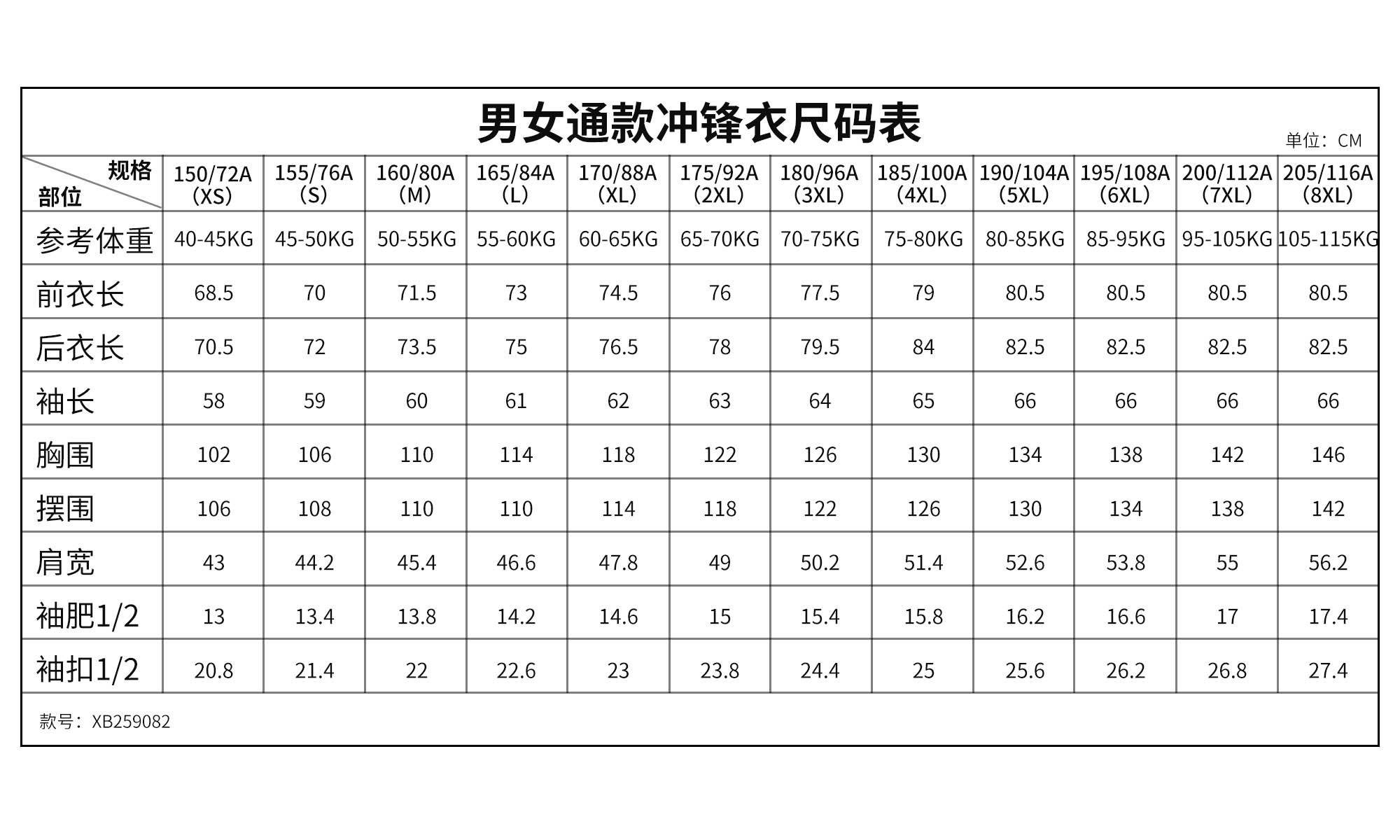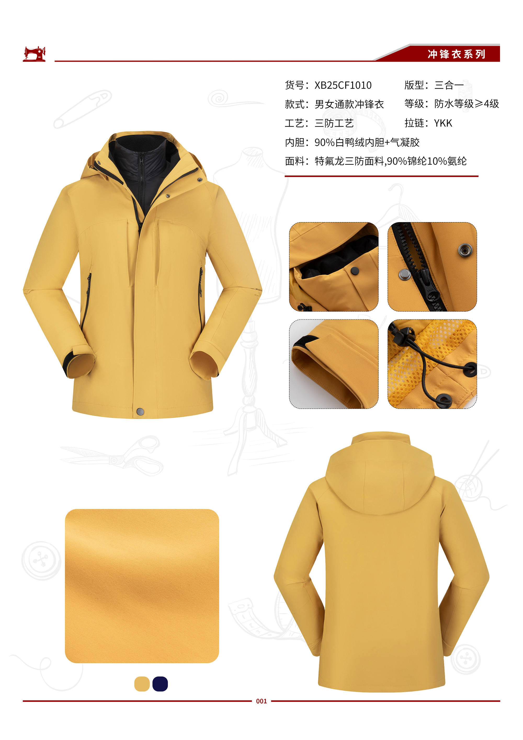 品名 XB25CF1010 男女通款90%白鸭绒冲锋衣