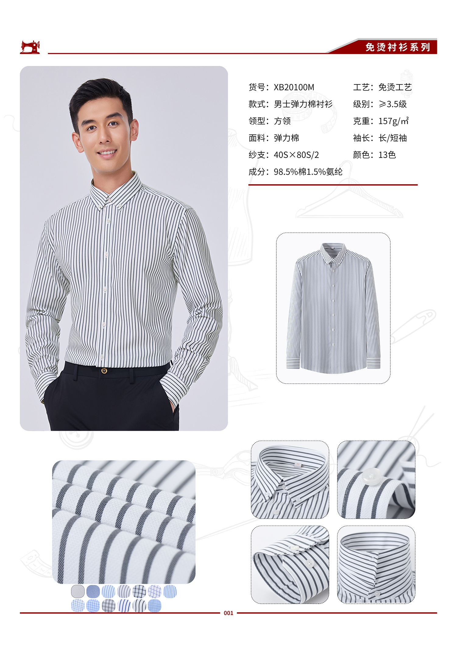 XB20100M-男士80支弹力棉免烫衬衫