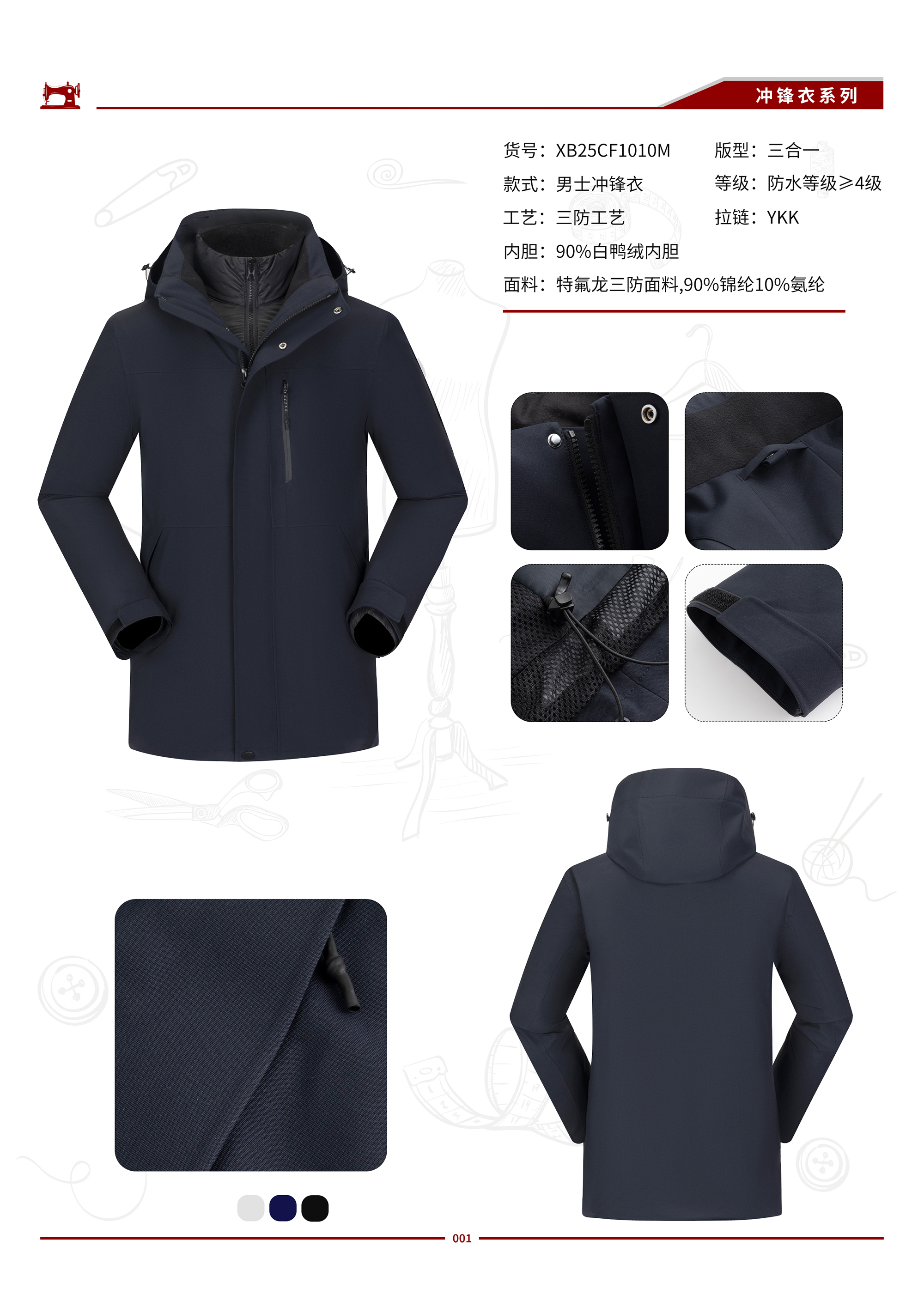 防水10000/透气10000/一衣三穿/YKK拉链