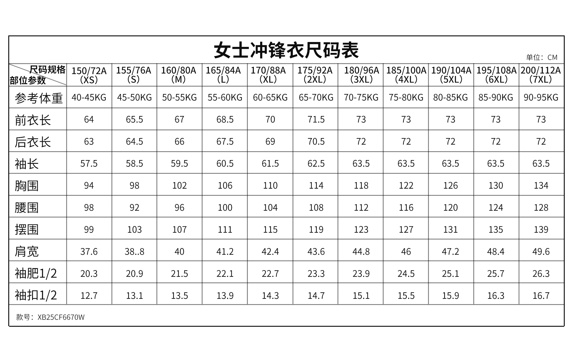 XB25CF6670W 女士90%白鸭绒冲锋衣