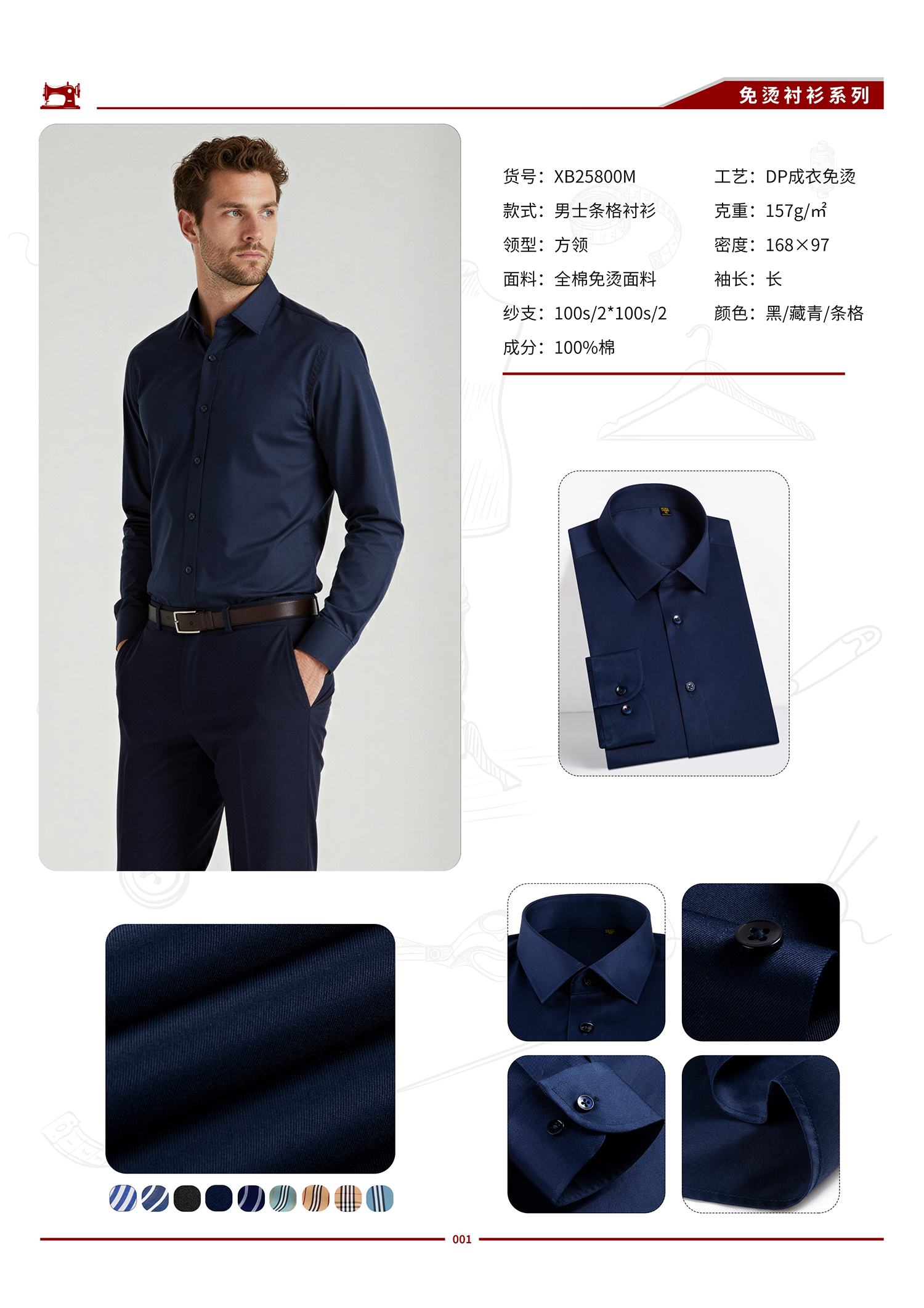 品名 XB25800M 男士纯棉DP成衣免烫衬衫