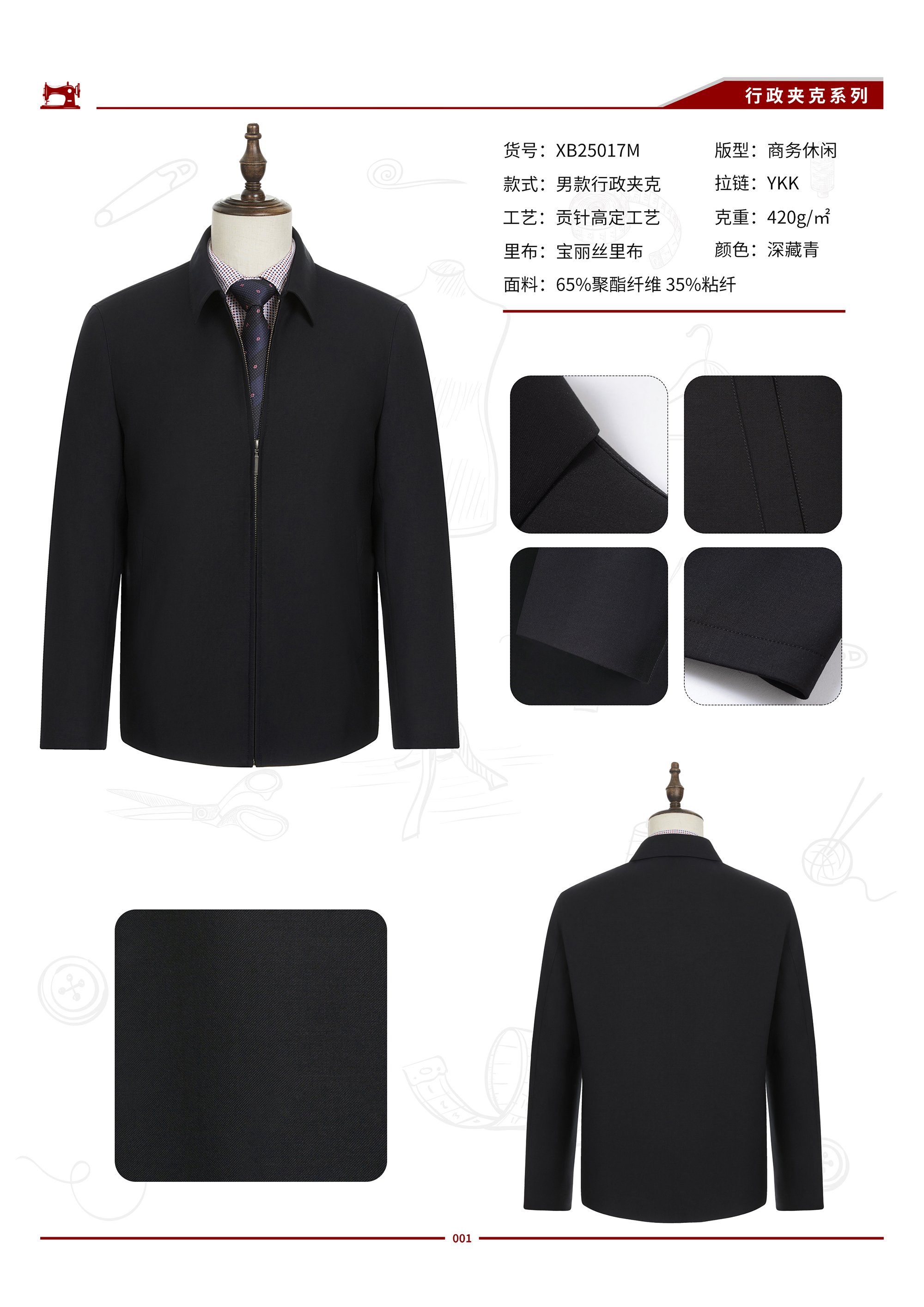 品名 XB25017M 男士商务行政夹克