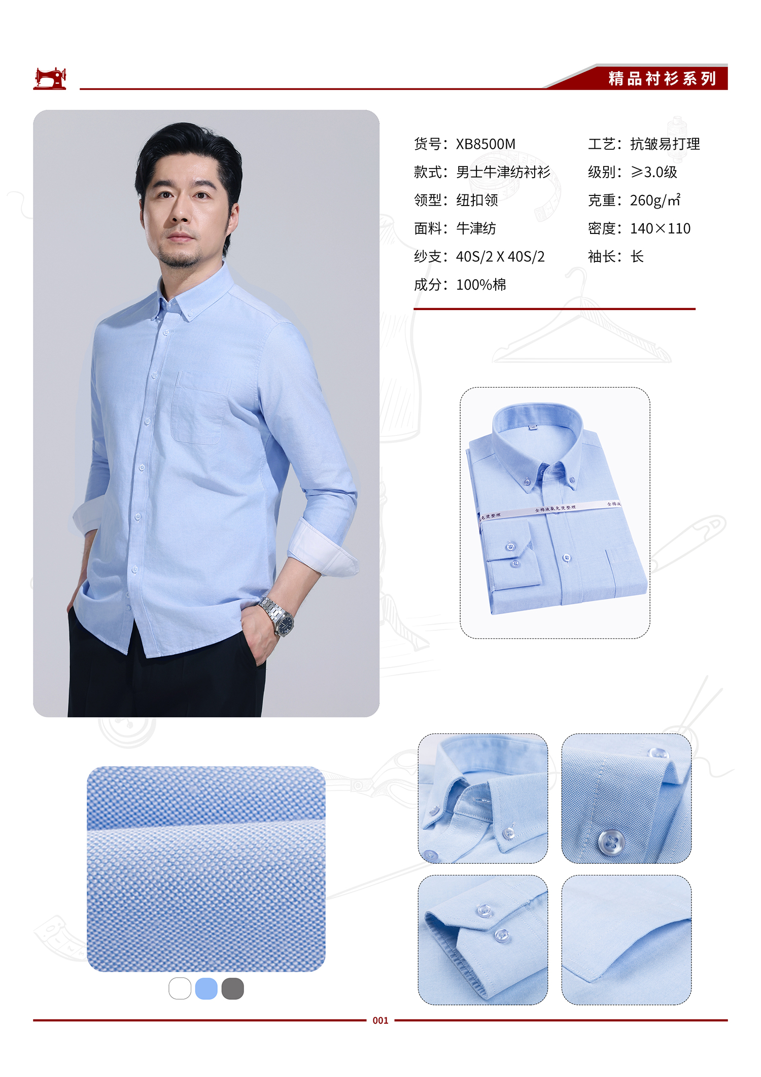 品名 XB8500M 男士纯棉牛津纺休闲衬衫
