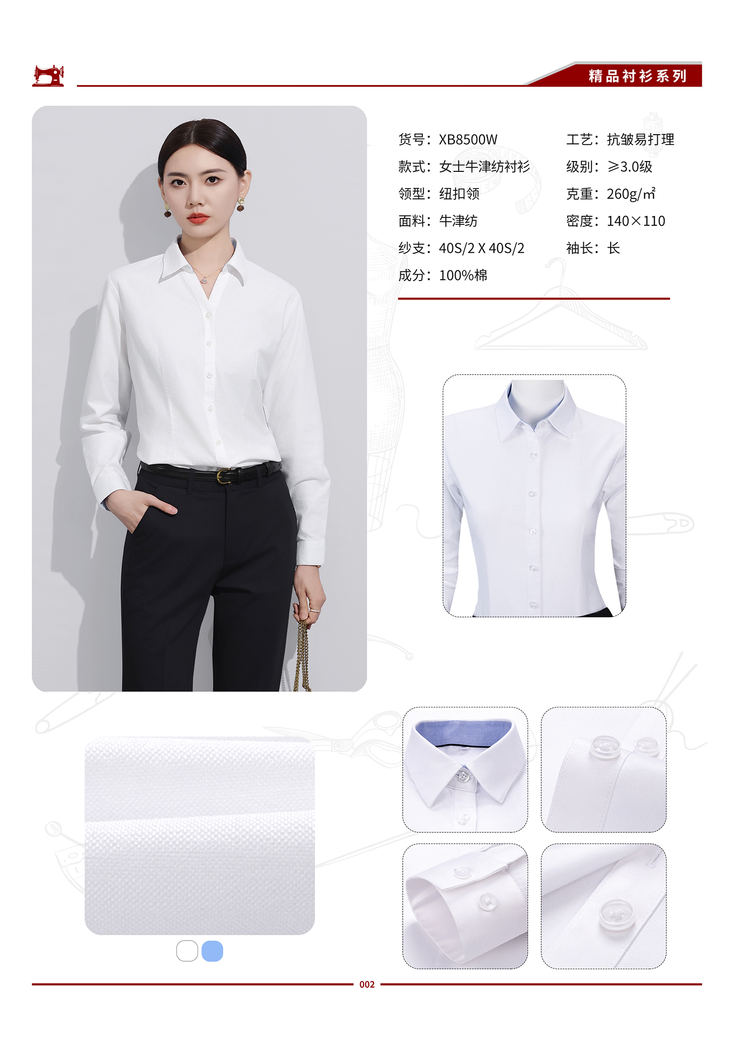 品名 XB8500W 女士纯棉牛津纺休闲衬衫