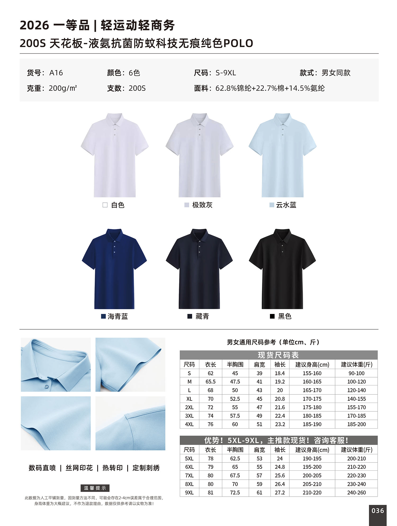 A16 液氨抗菌防蚊科技无痕纯色P0L0