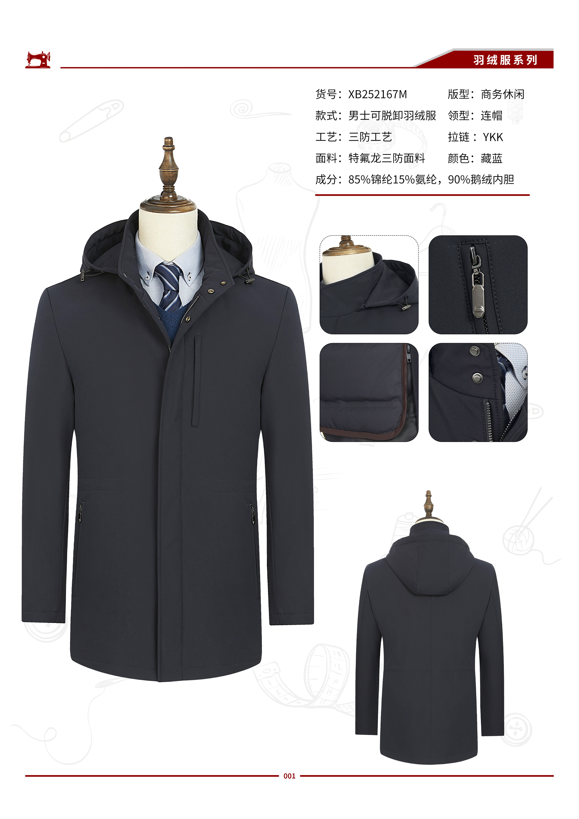 XB252167M 男士中长款90鹅绒服