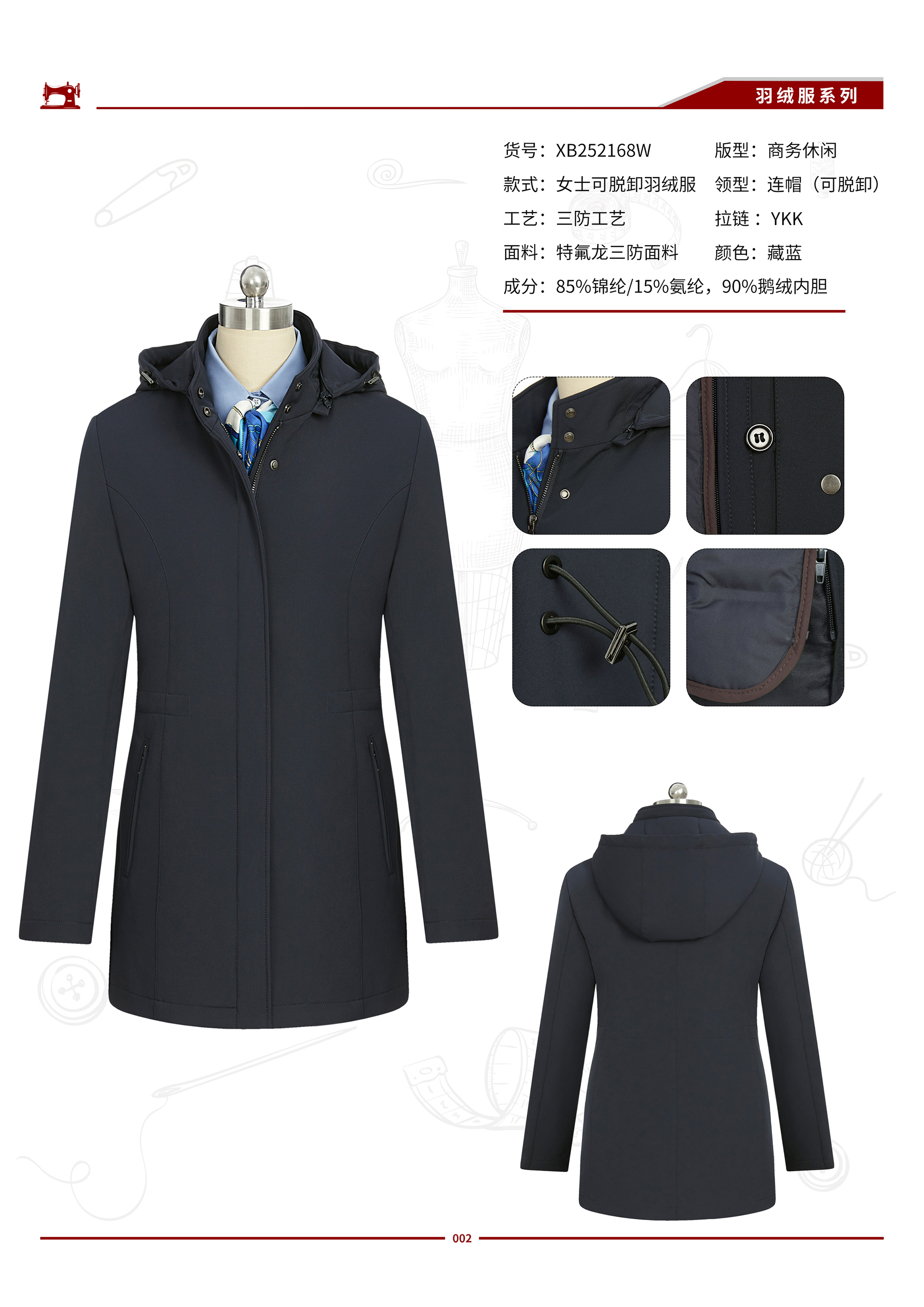 XB252168W 女士中长款90鹅绒服