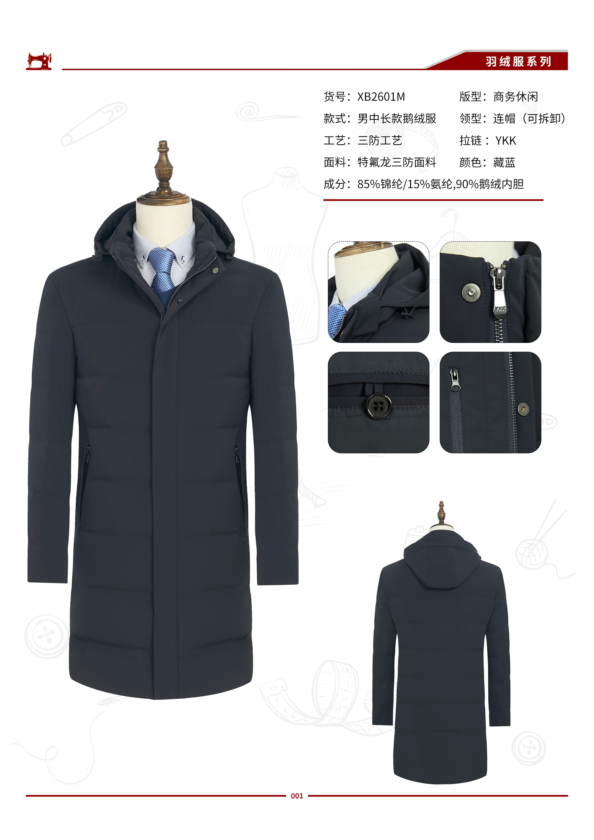 XB2601M 男中长款鹅绒服(90%鹅绒)