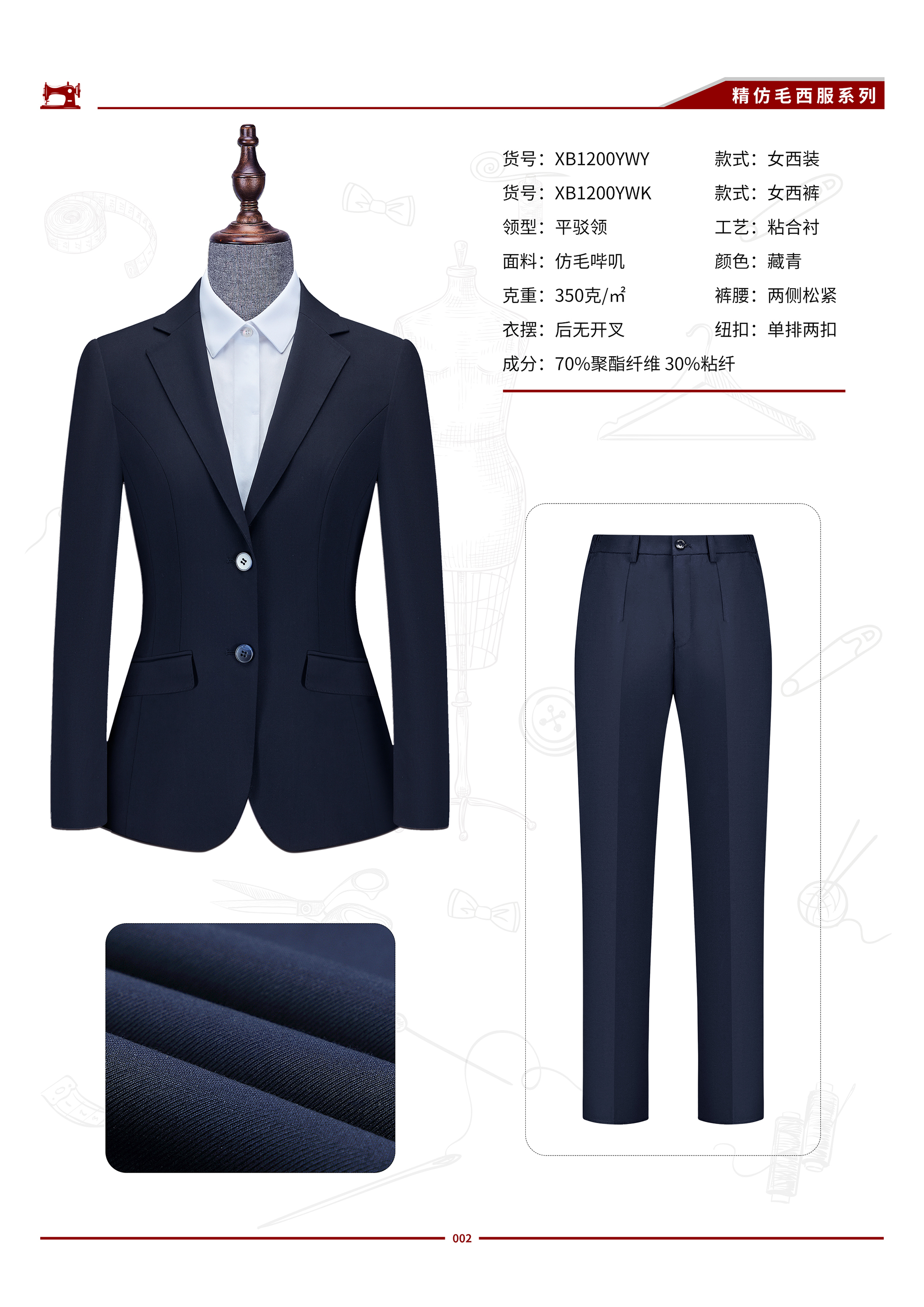 XB1200YW 女士仿毛料西服套装