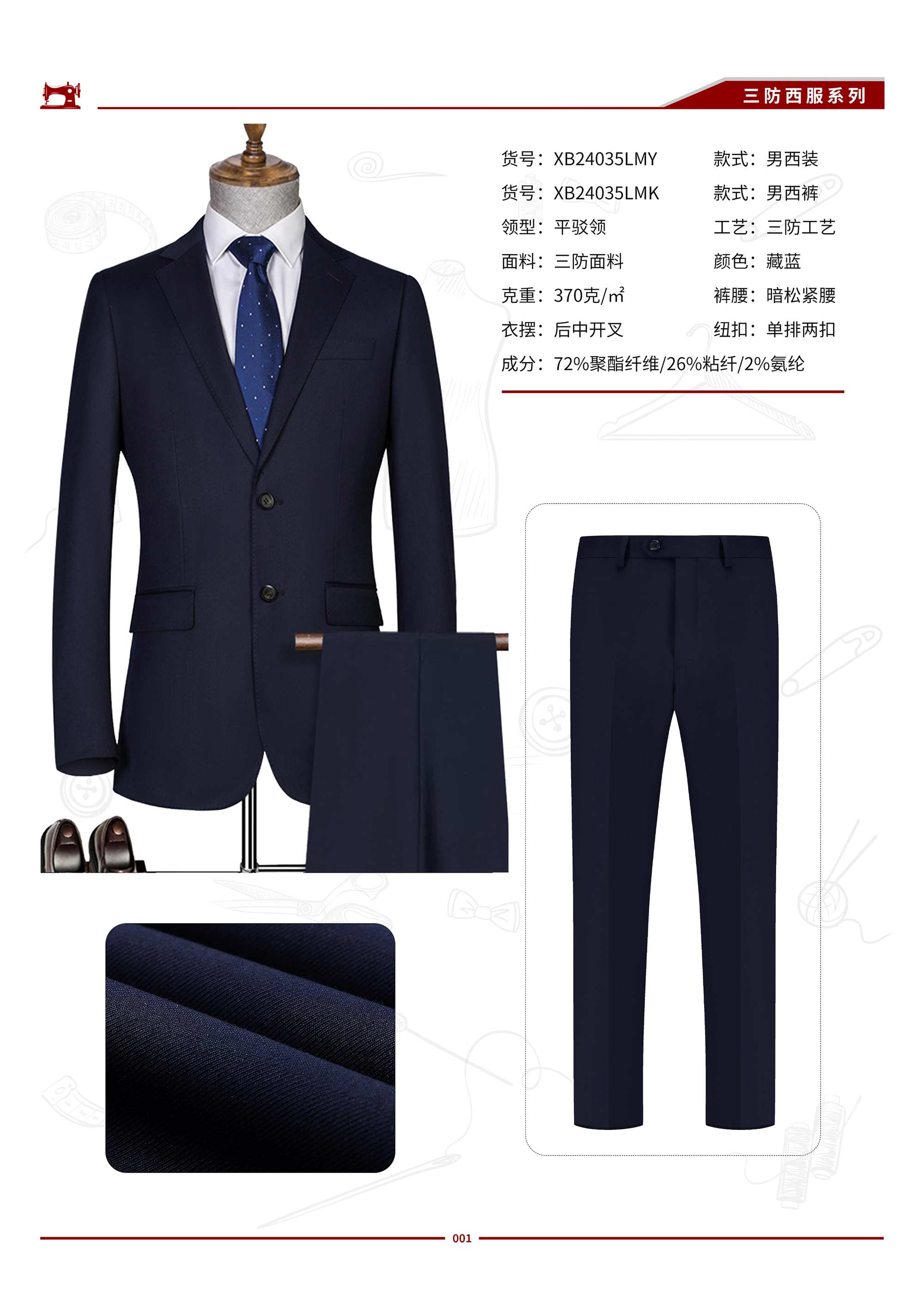 XB24035LM 男士三防科技面料西服
