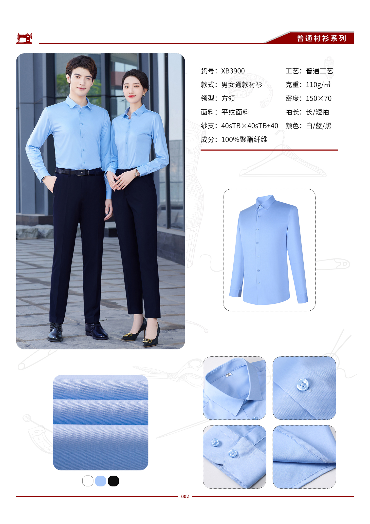 XB3900 男女通款工装衬衫