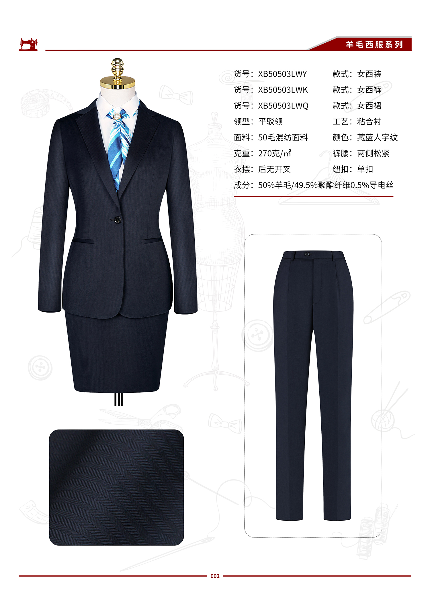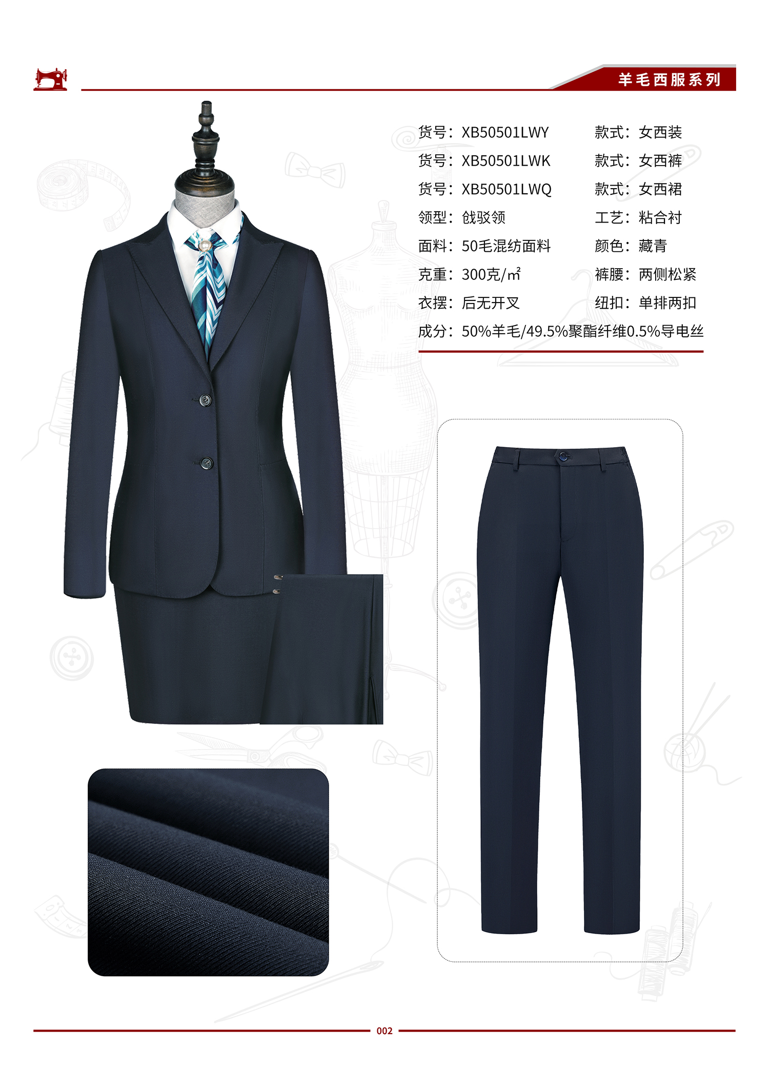 XB259901LW 女士100%羊毛半麻衬可机洗西服