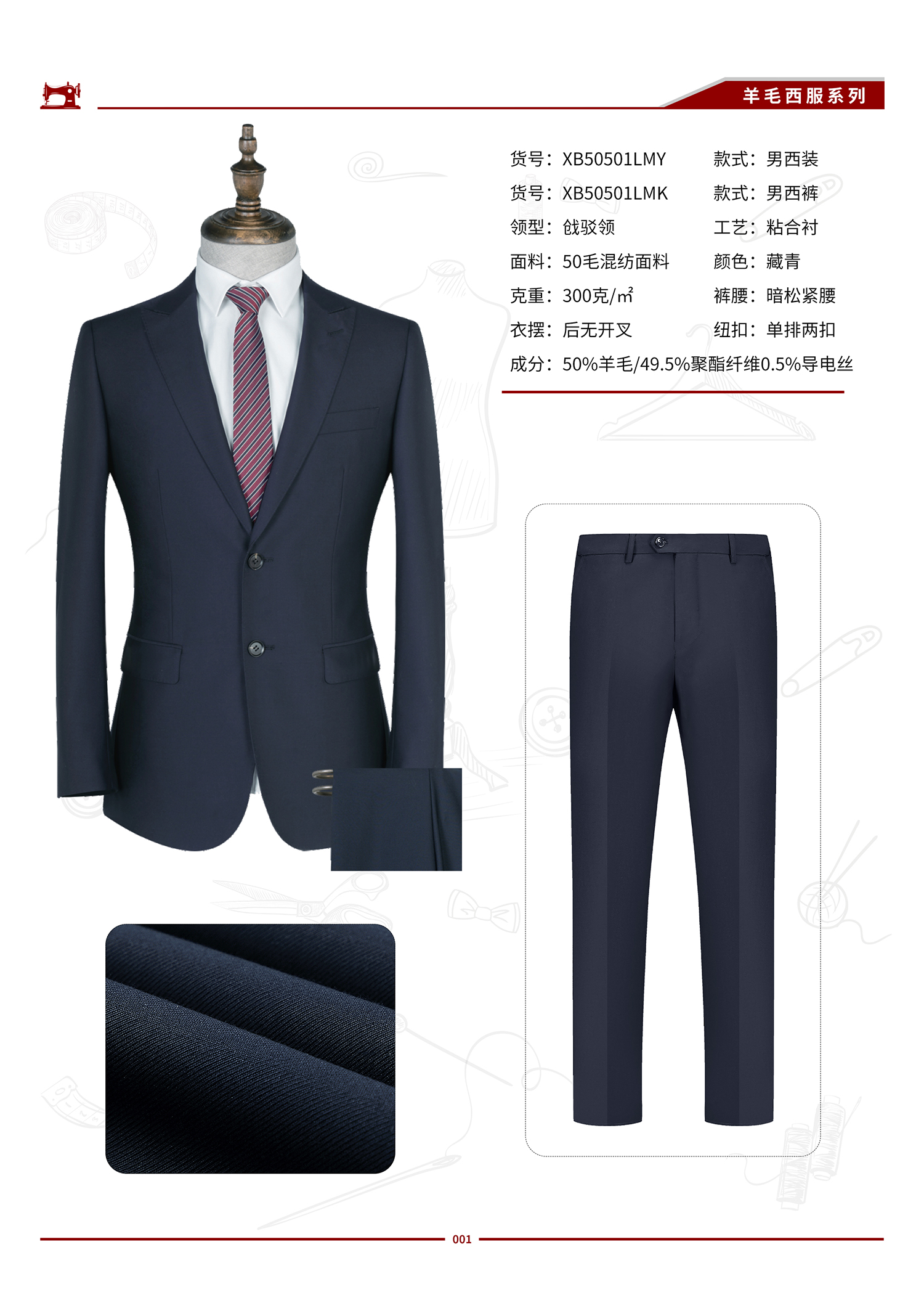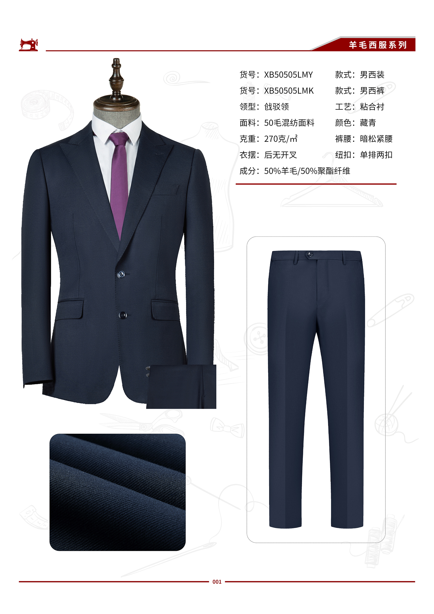 XB259901LM 男士100%羊毛半麻衬可机洗西服