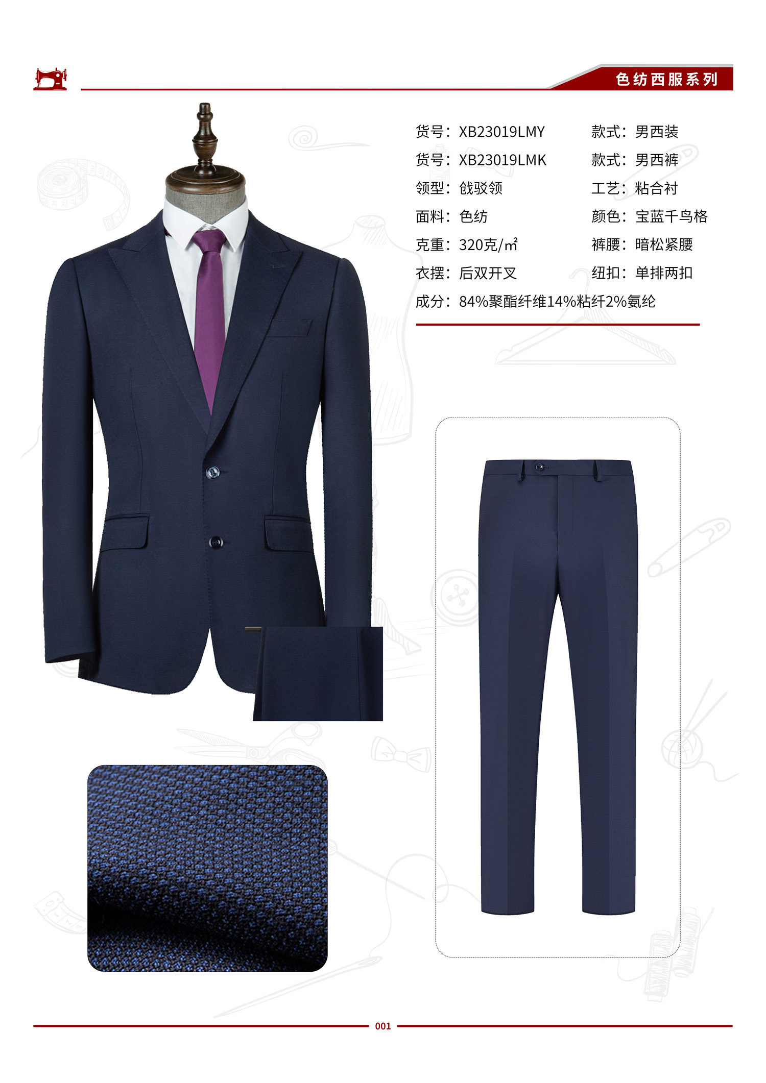 XB23019LM 男士宝蓝千鸟格戗驳领西服