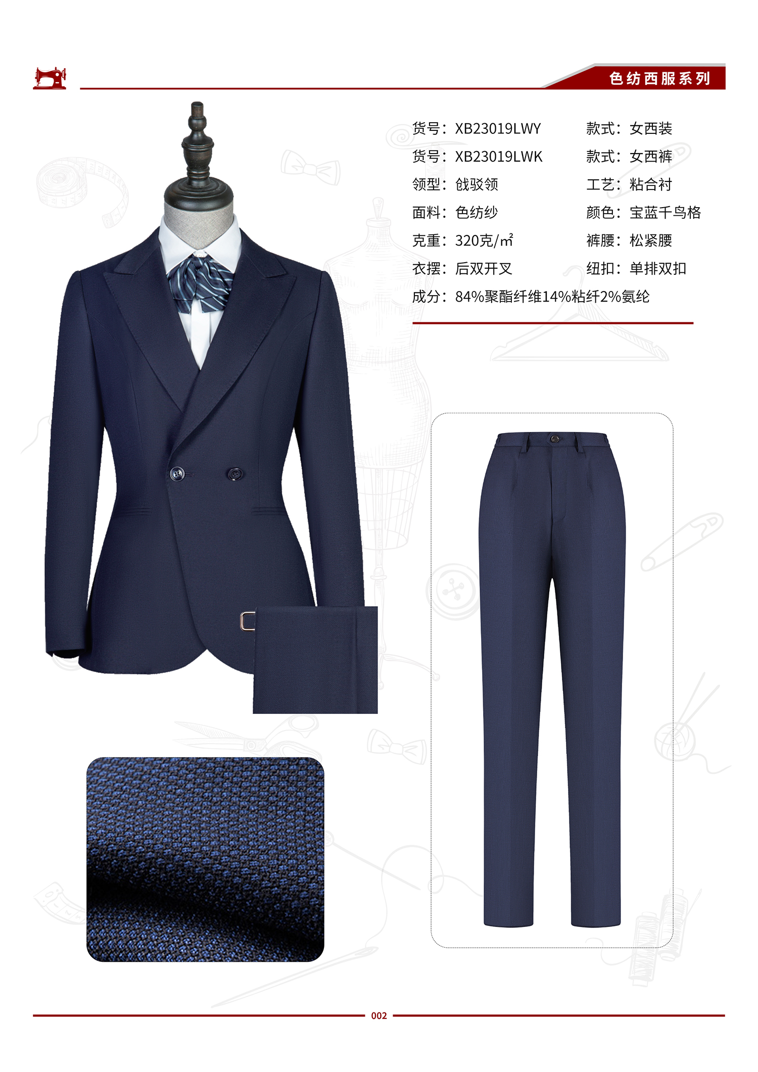 XB23019LW 女士宝蓝千鸟格色纺西服