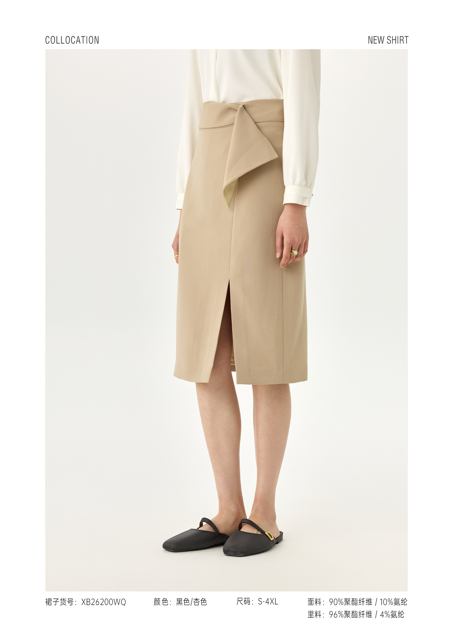 XB26100WQ 醋酸纹后开叉半裙