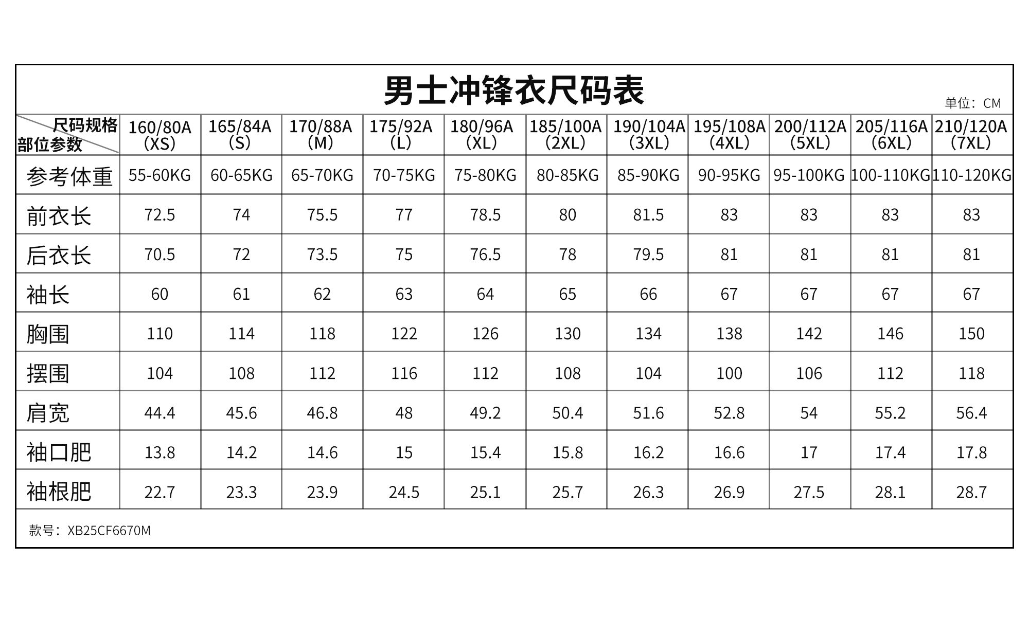 XB25CF6670M 男士90%白鸭绒冲锋衣