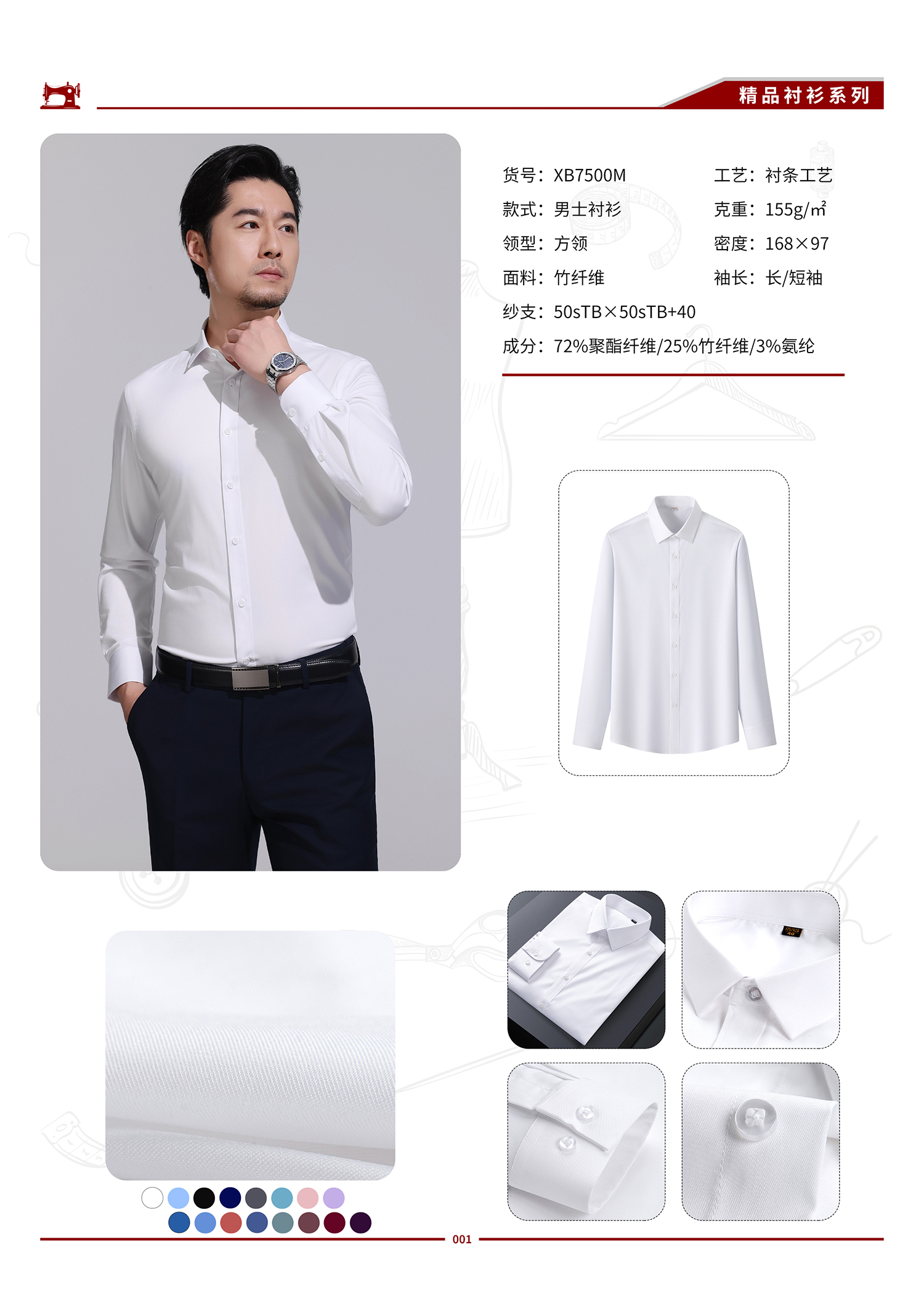 XB7500M 男士竹纤维抗皱易打理衬衫