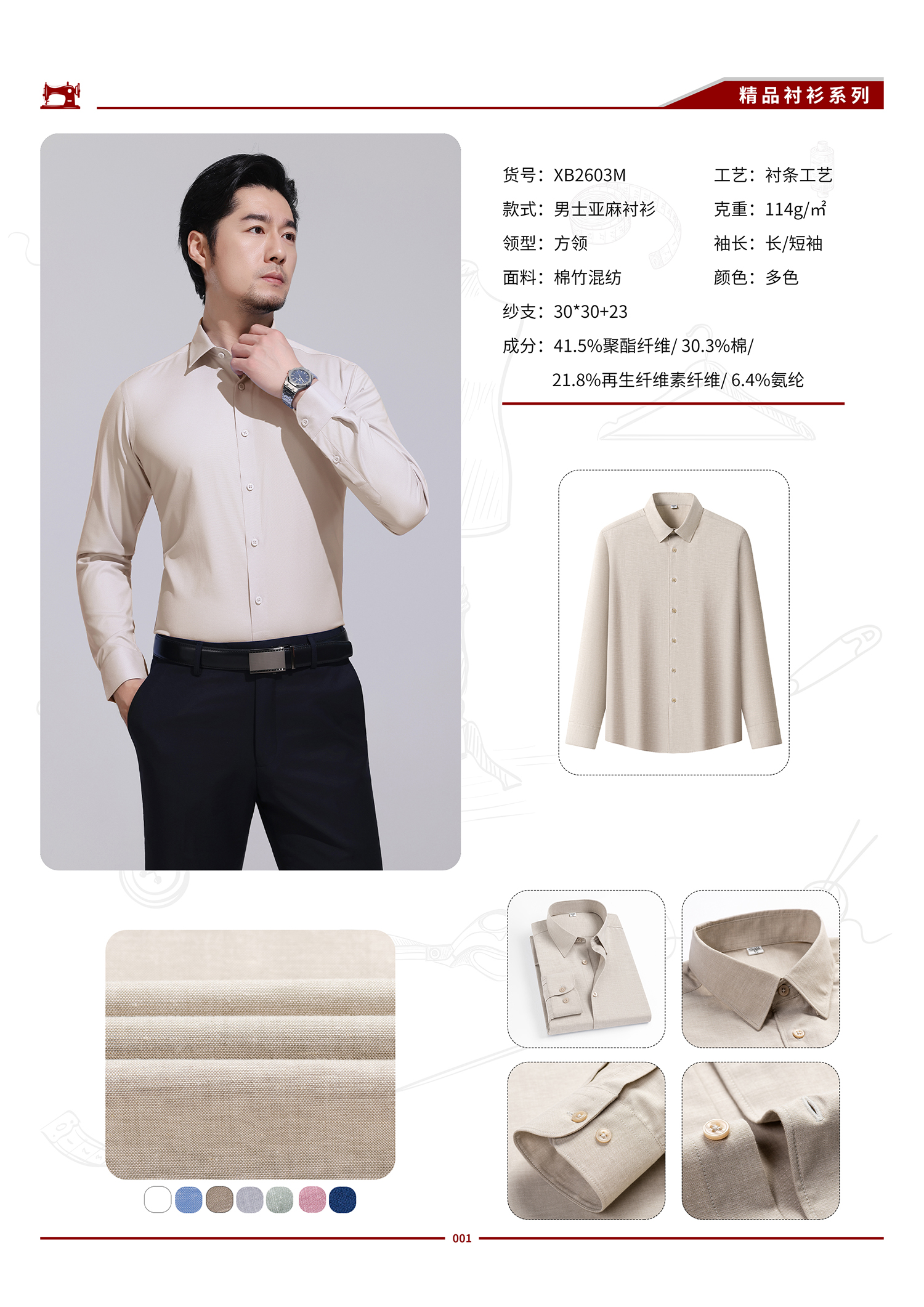 XB2603M 男士亚麻棉混纺休闲衬衫
