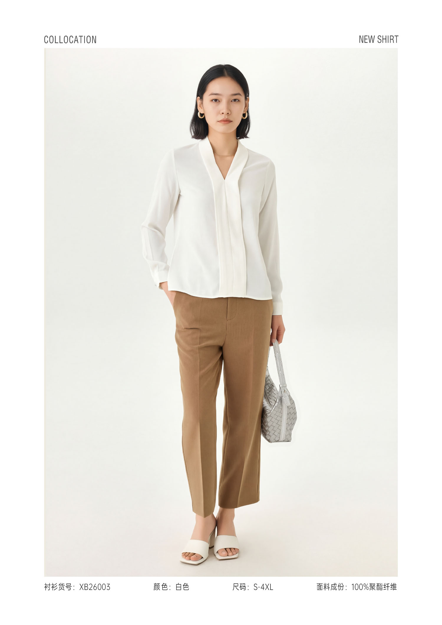 XB26003WL 女士时尚外翻V领通勤衬衫