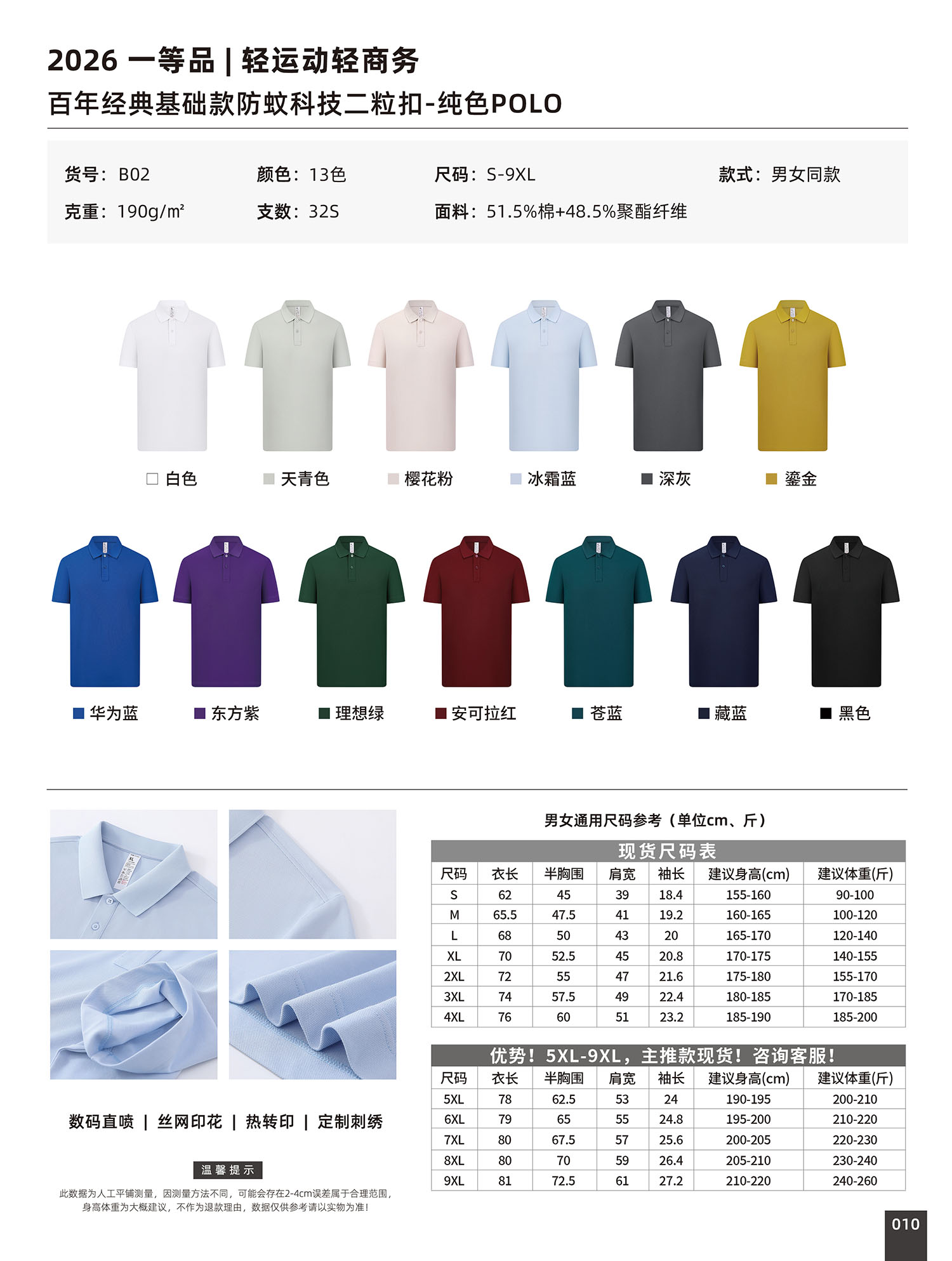 B02 经典基础款防蚊科技二粒扣纯色POL0