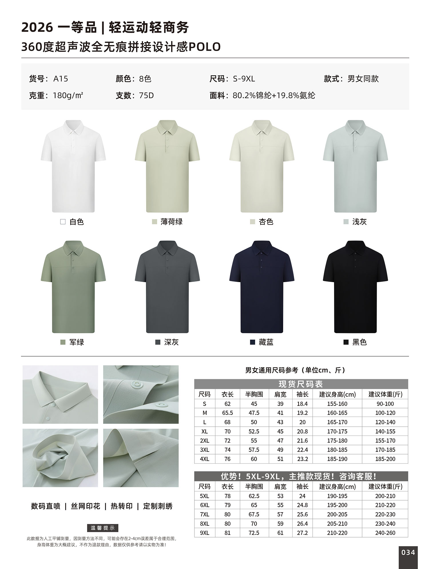 A15 男女同款360度超声波全无痕拼接设计感POL0