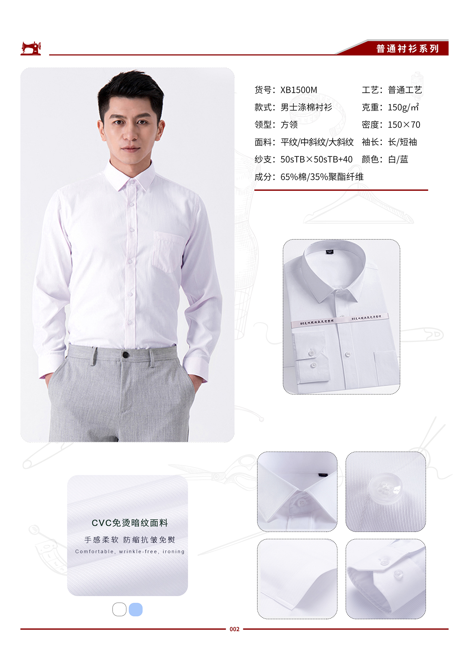 XB1500M 男士涤棉工装衬衫